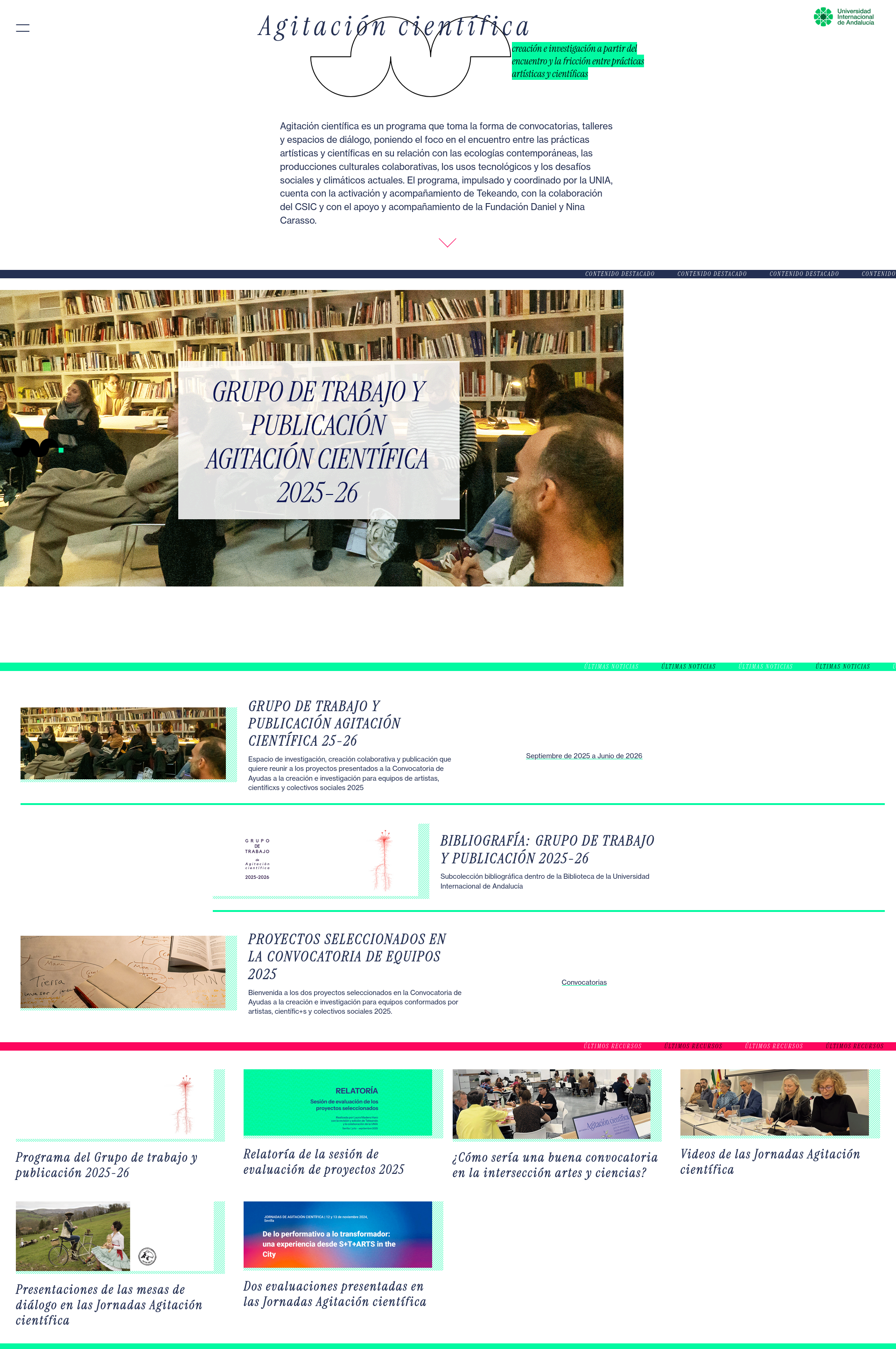 Scientific Agitation is a program that takes the form of open calls, workshops, and dialogue spaces, focusing on the intersection of artistic and scientific practices in relation to contemporary ecologies, collaborative cultural productions, technological uses, and current social and climate challenges. The program, promoted and coordinated by UNIA, is activated and supported by Tekeando, with the collaboration of the CSIC and the support of the Daniel and Nina Carasso Foundation.
